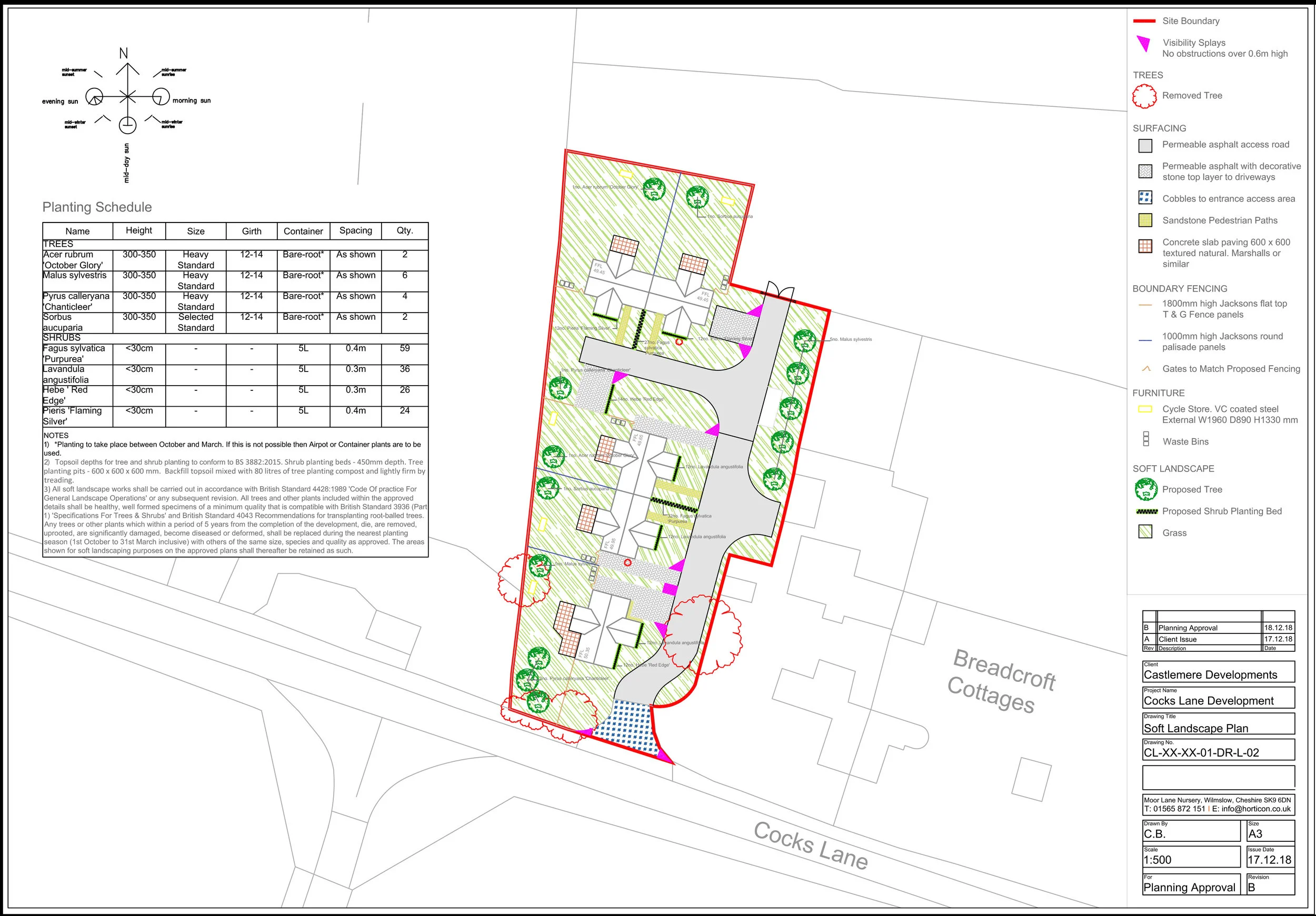 A full landscape design package to gain planning permission for this 5 unit residential development in Warfield, Bracknell. The landscape drawings included a hard landscape plan, a soft landscape plan, a boundary fencing and vehicular access plan, a site set up plan and a 3 year soft landscape maintenance scheme.